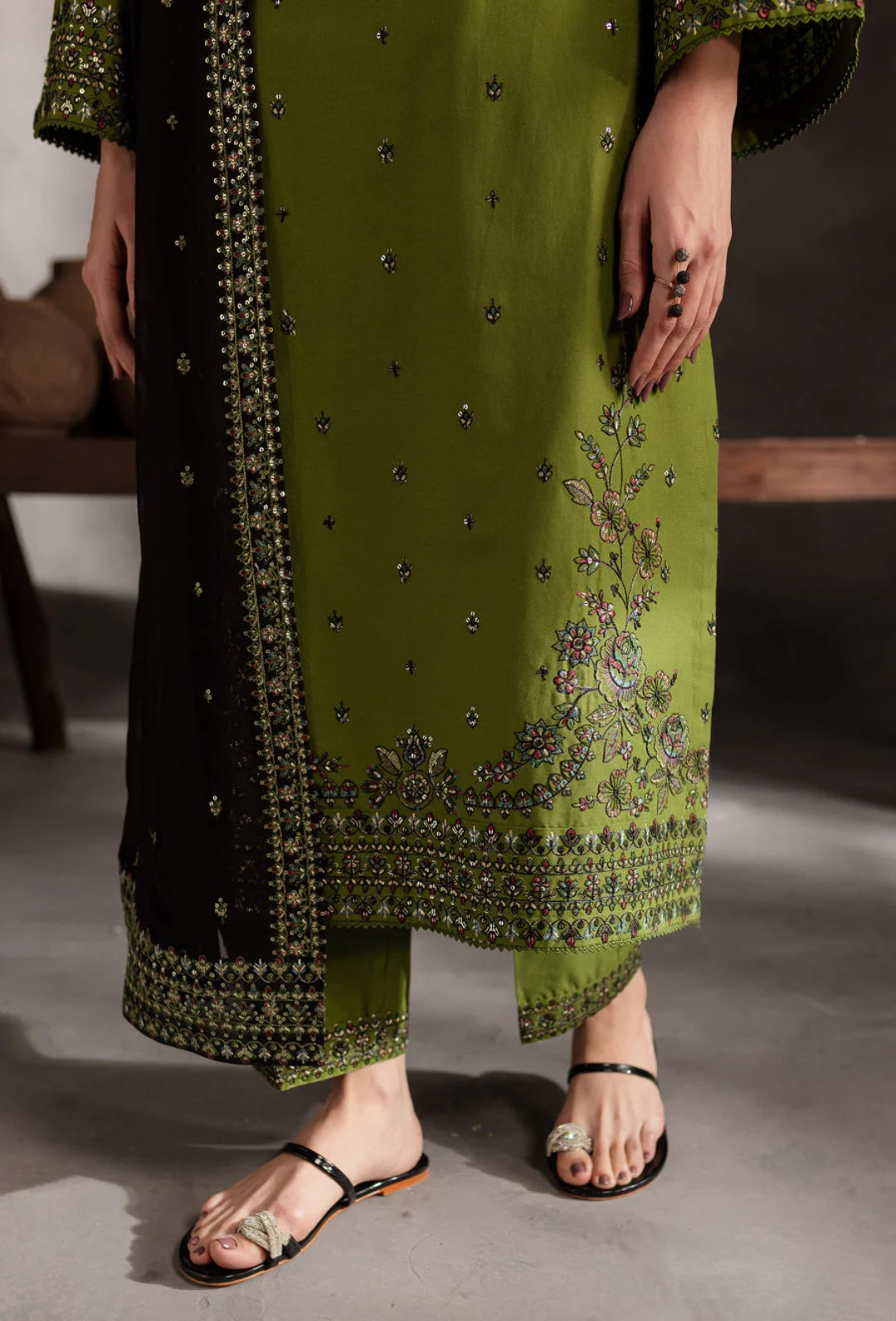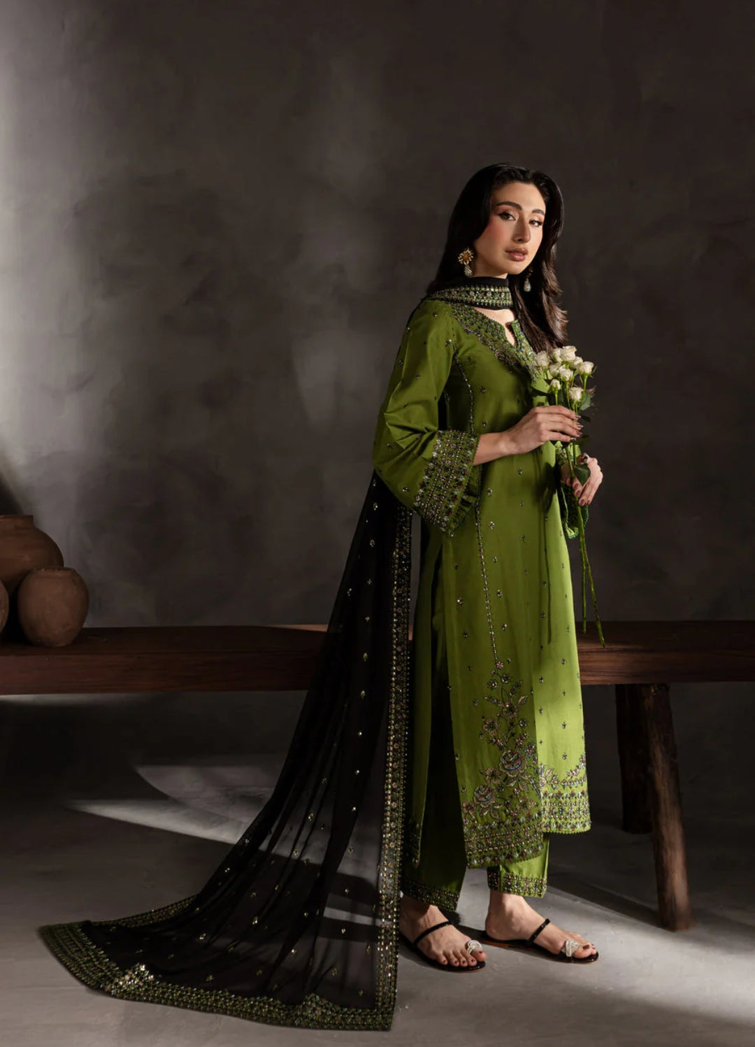 3-Piece Set: Includes an embroidered shirt and Embroidered trousers + Fine Embroidered Dupatta